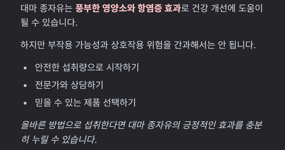 다만, 이러한 효능은 꾸준한 섭취와 건강한 생활습관이 함께할 때 나타난다는 점을 기억해야 합니다.