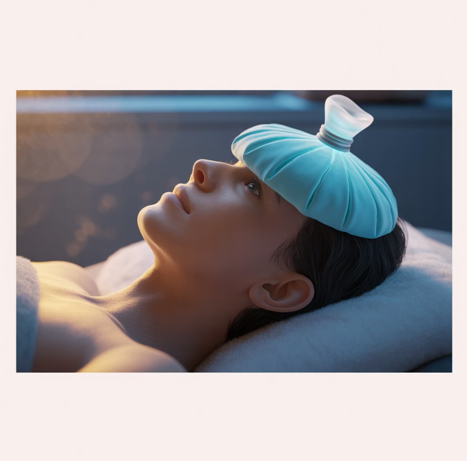 • 편두통: 이마와 관자놀이에 냉찜질 (얼음팩을 타올로 감싸서)