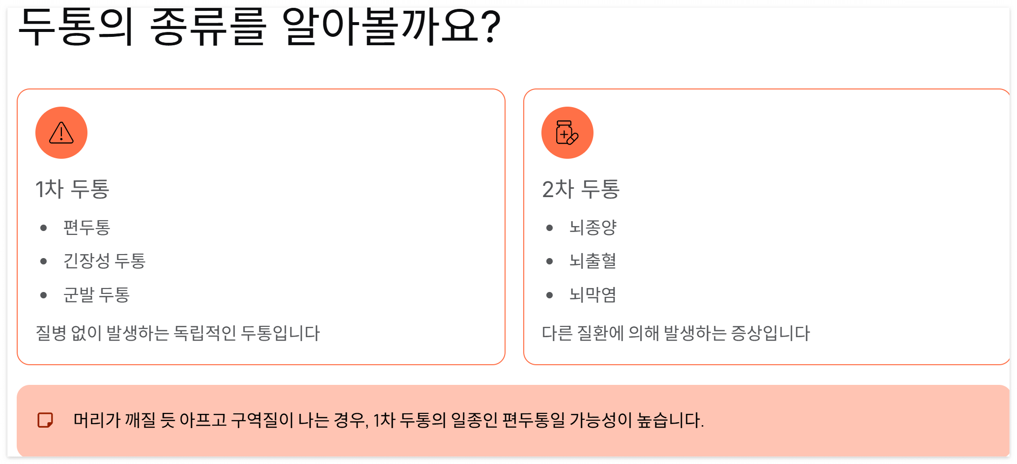 • 긴장성 두통: 머리 전체가 조이는 듯한 통증, 스트레스로 악화