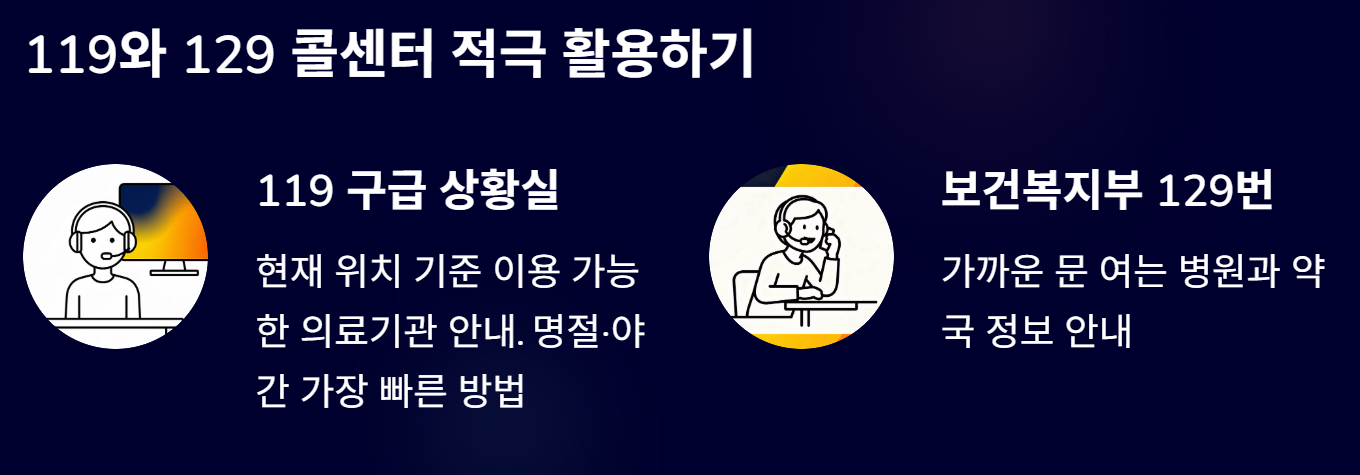 설 연휴 기간 의료기관을 방문하기 전에는 반드시 전화로 재확인하세요. 접수 마감 시간, 소아 진료 가능 여부, 응급실 경증 진료 제한 여부 등을 미리 물어보는 것이 좋습니다.