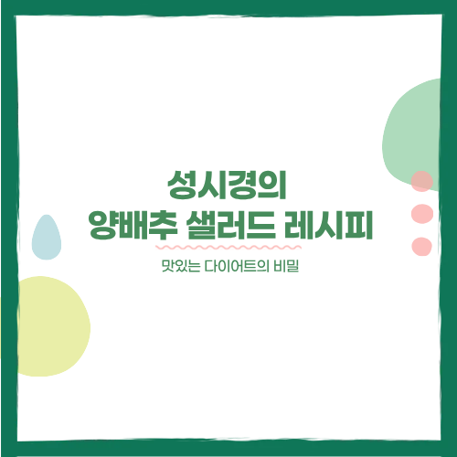 - 성시경 님이 추천한 양배추 샐러드 레시피는 맛과 건강, 다이어트 효과를 모두 갖춘 완벽한 식단입니다. 초간단 조리법 덕분에 바쁜 현대인들도 쉽게 다이어트를 지속할 수 있습니다.