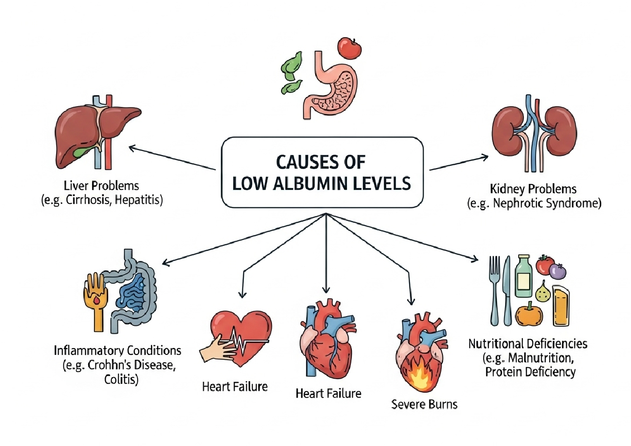 간 기능이 저하되어 있으면 알부민을 충분히 만들지 못해요. 간경변이나 간염 같은 간 질환이 있을 때 알부민 수치가 크게 떨어지곤 해요. 신장 질환이 있어도 알부민이 소변으로 빠져나가면서 수치가 낮아져요.