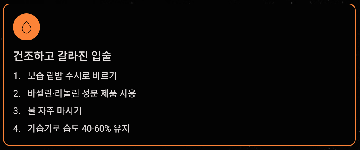 예방법: 충분한 수분 섭취와 보습 립밤 사용이 효과적입니다