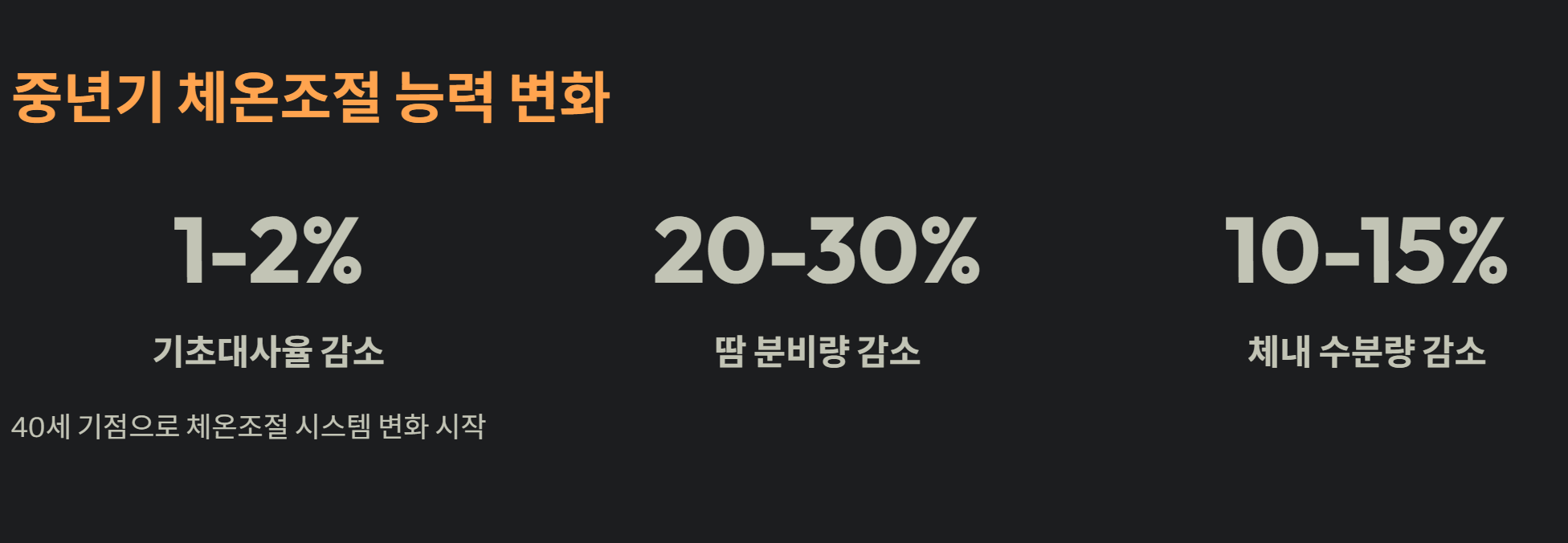 대한내과학회 연구에 따르면, 40세를 기점으로 우리 몸의 체온조절 시스템에 점진적인 변화가 시작된다고 해요.