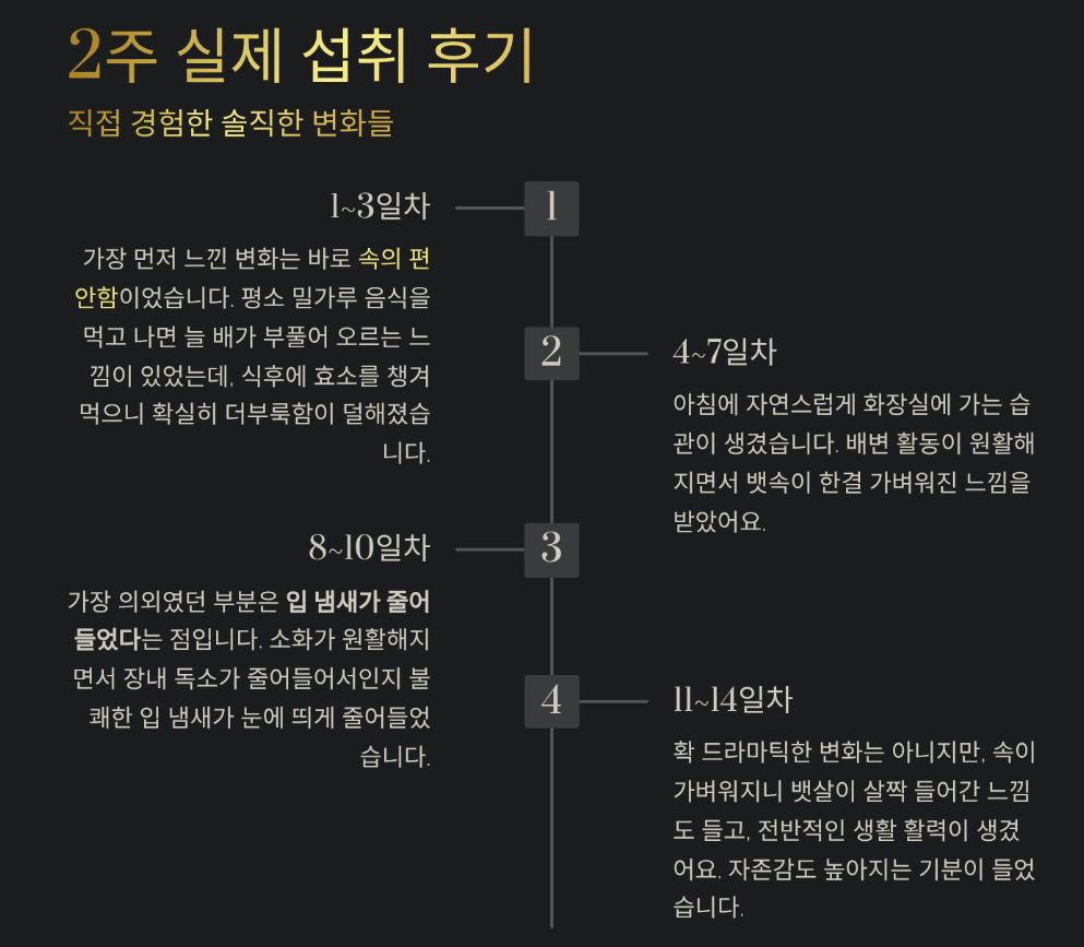 여러분의 속이 편안해지고 몸이 가벼워지는 행복한 변화를 직접 경험하시기를 진심으로 응원합니다!