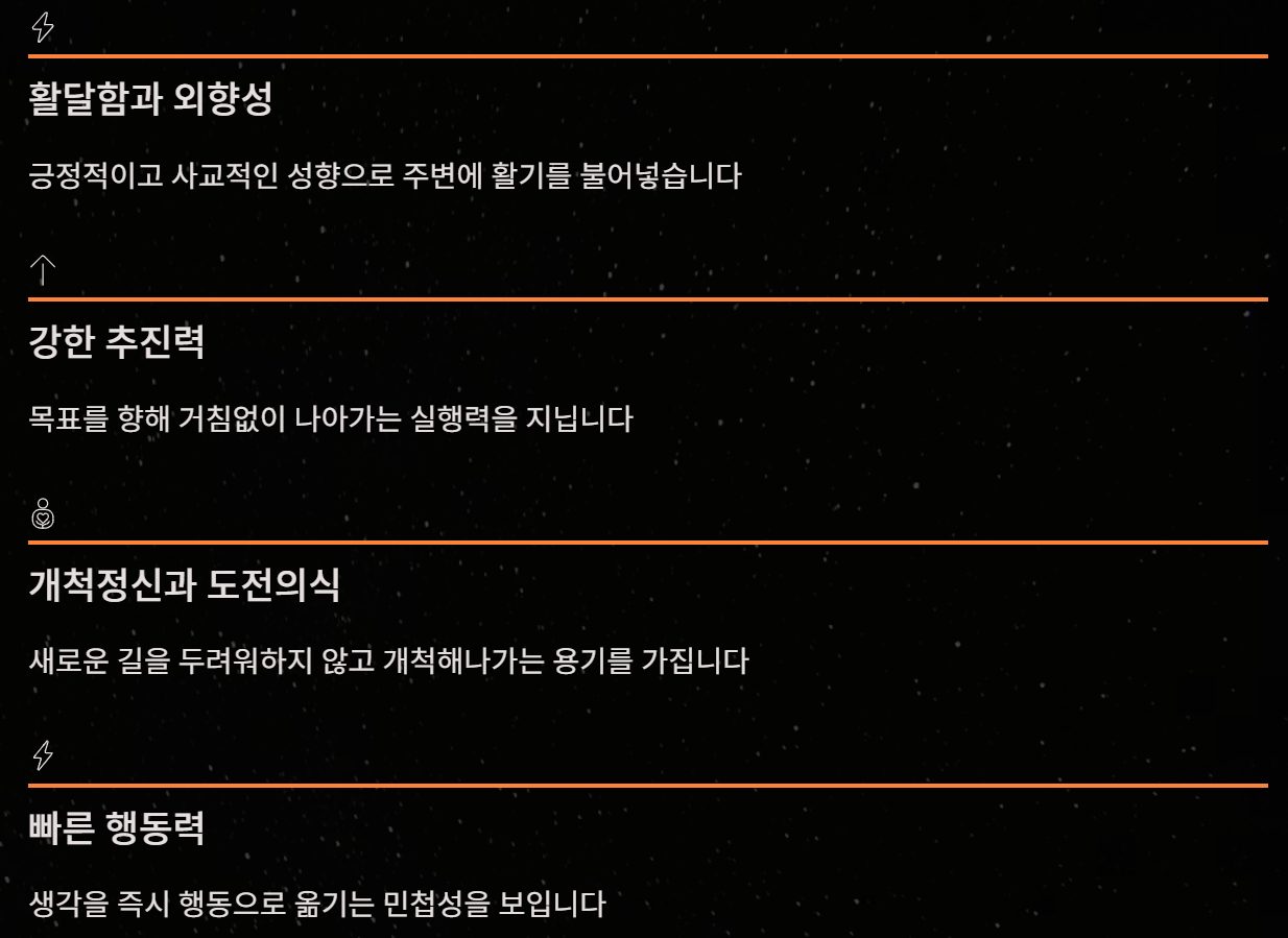 - 리더십이 강하고 주도적이다: 자연스럽게 앞장서는 경향
