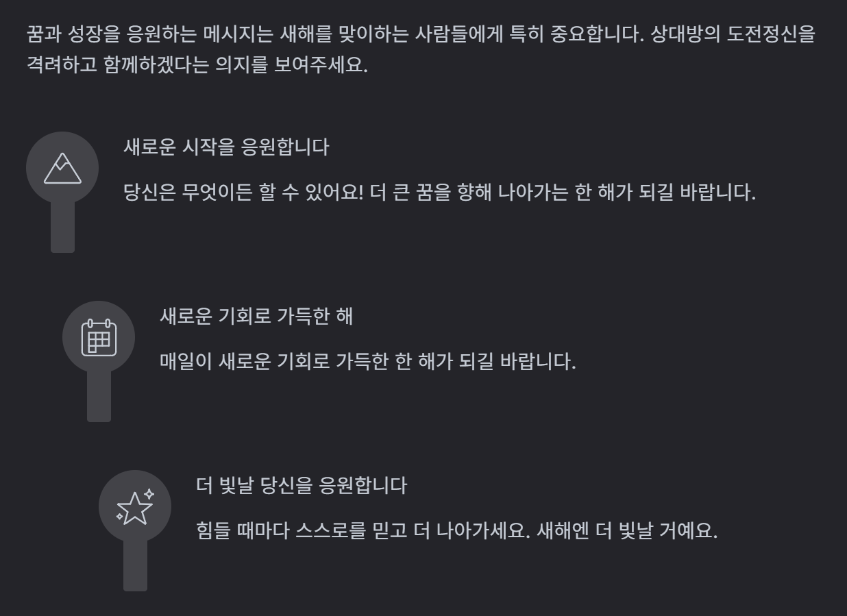 매해 새해가 되면 우리는 고민에 빠집니다. 가족에게, 친구에게, 직장 동료에게 보낼 새해 인사말을 어떻게 준비할지 말입니다. 뻔한 "새해 복 많이 받으세요"라는 인사만으로는 부족하게 느껴지고, 그렇다고 너무 길거나 어려운 문장은 전달하기 어렵습니다. 혹은 관계에 맞는 적절한 톤의 메시지를 찾기가 쉽지 않아 고민하다가 시간을 허비하는 경험을 누구나 해본 적이 있을 것입니다.